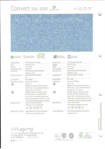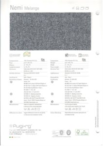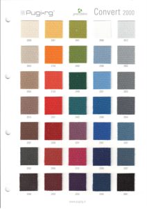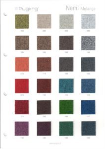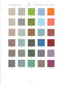 Standard fabric is recycled Pugi RG Convert 2000. We strive to keep the most common colors in stock.
